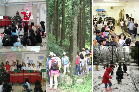 礼拝では人形や絵を使って聖書のお話をするリ-ダ-もいます。礼拝後の活動は室内ではゲ-ム、工作や聖書物語のビデオを見たり、前の公園でドッチボ-ルやミニ運動会などやります。夏にはたのしいキャンプ。