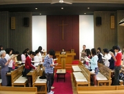 教会礼拝堂で ※礼拝堂での礼拝のあと皆で話い合いや学び等